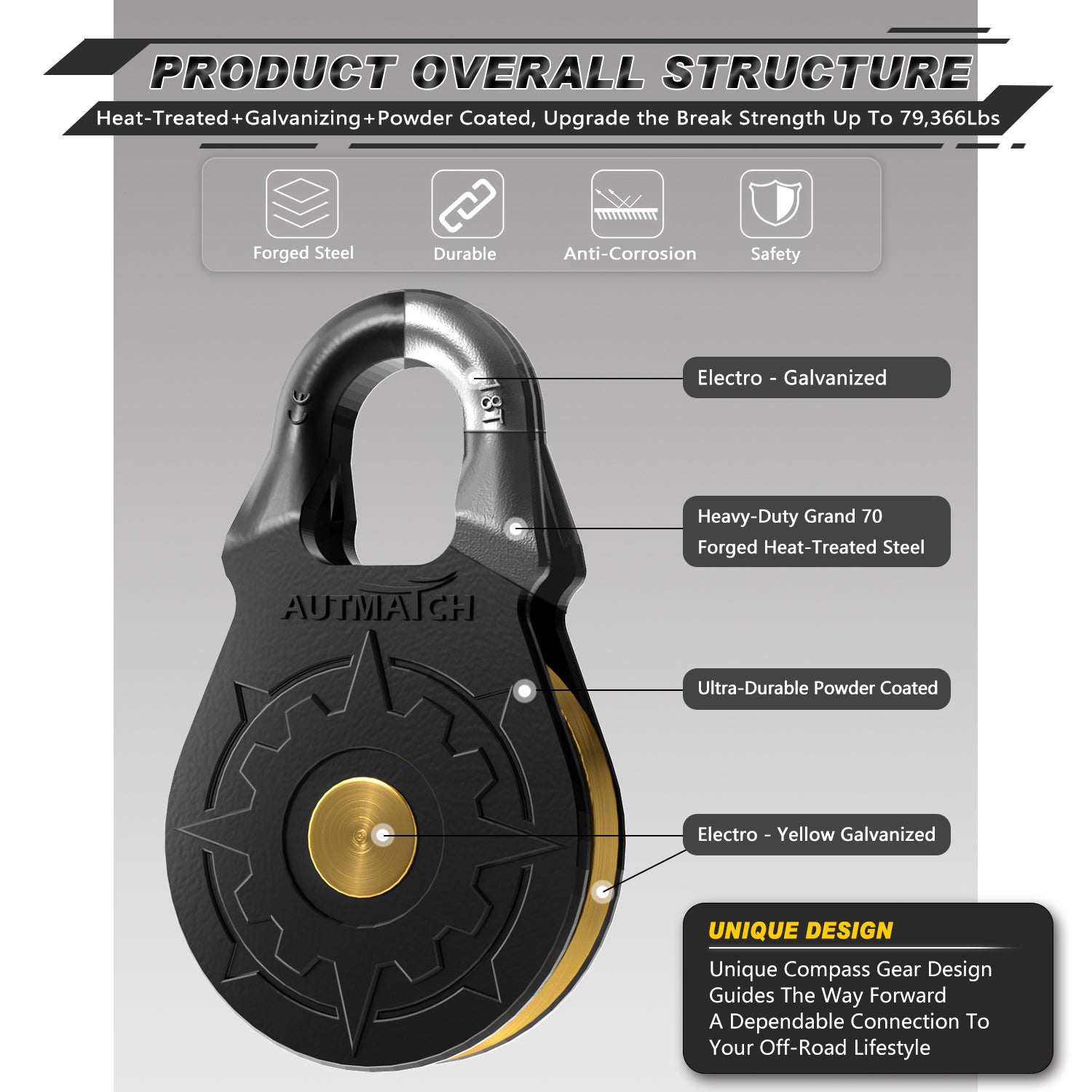 - Compatible Feature: Unique Compass Gear Design of Winch Pulley Work Well with 3/4 D Ring Shackles, Soft Shackle, Tow Hook, Winch Line, Trailer Rope Great For Truck, ATV, UTV, 4X4 Off Road Vehicles, Etc, Get You Out of Any Situation!