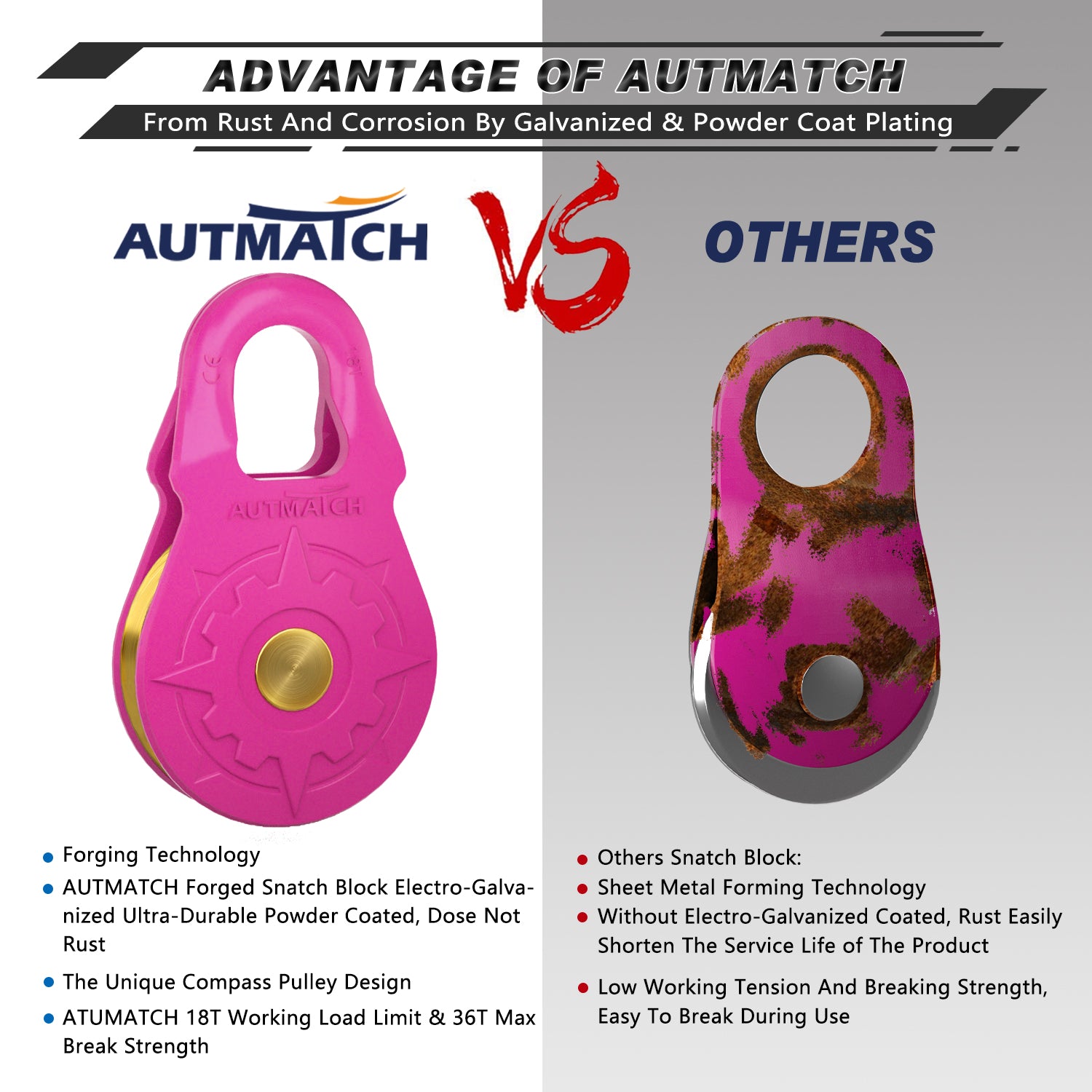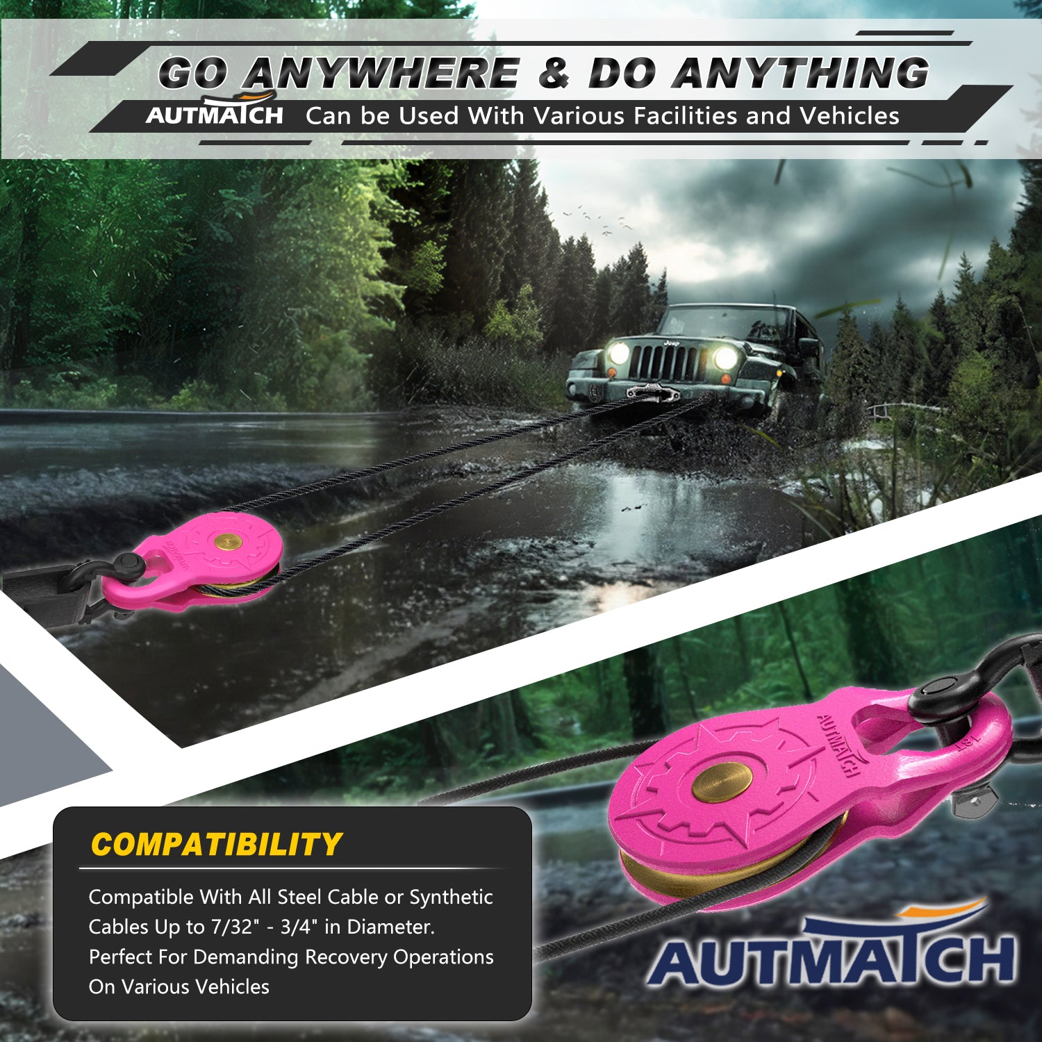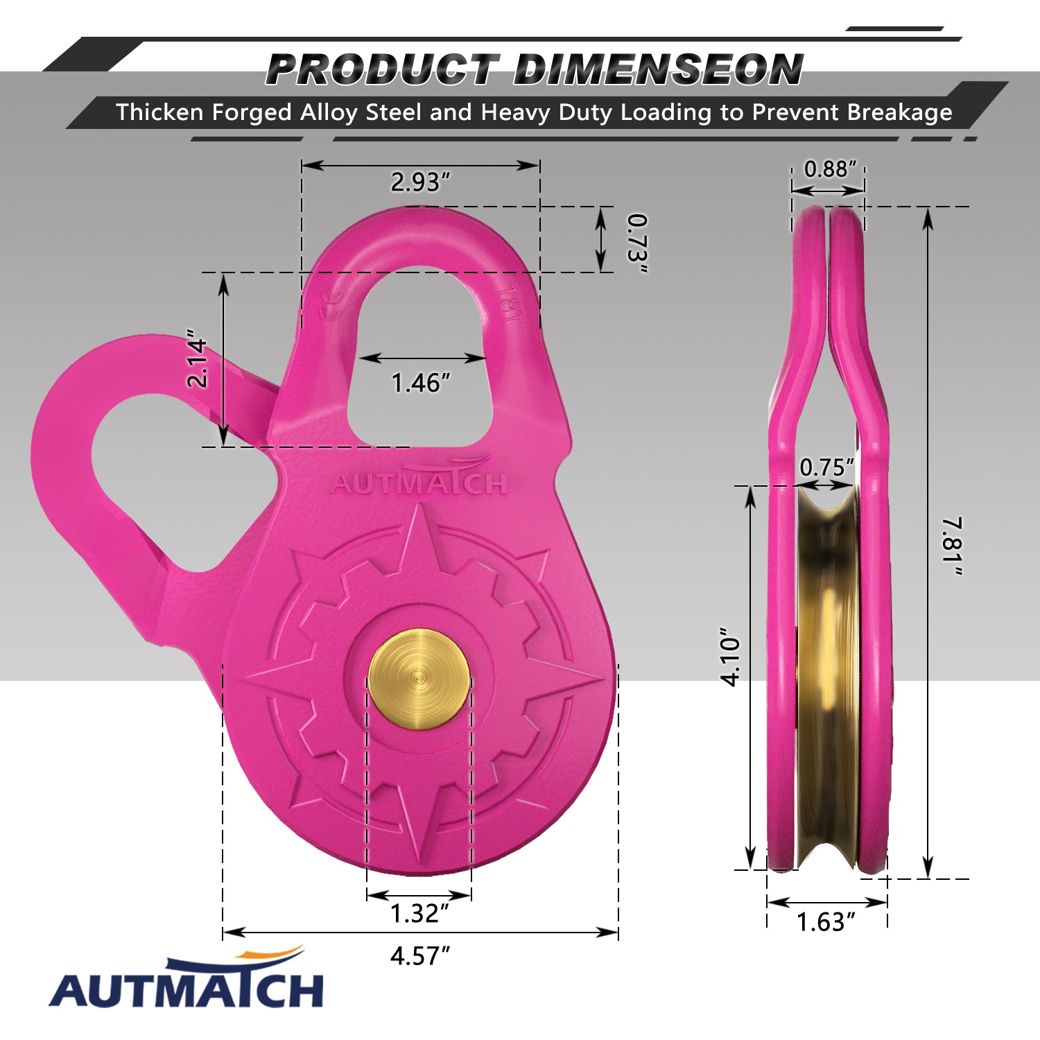 AUTMATCH Winch Snatch Block 18 Ton - Winch Pulley (79,366 Lbs) Break Strength, Heavy Duty Off Road Recovery Towing Pulley Blocks for Synthetic Rope or Steel Cable, Truck, UTV, ATV, Pink