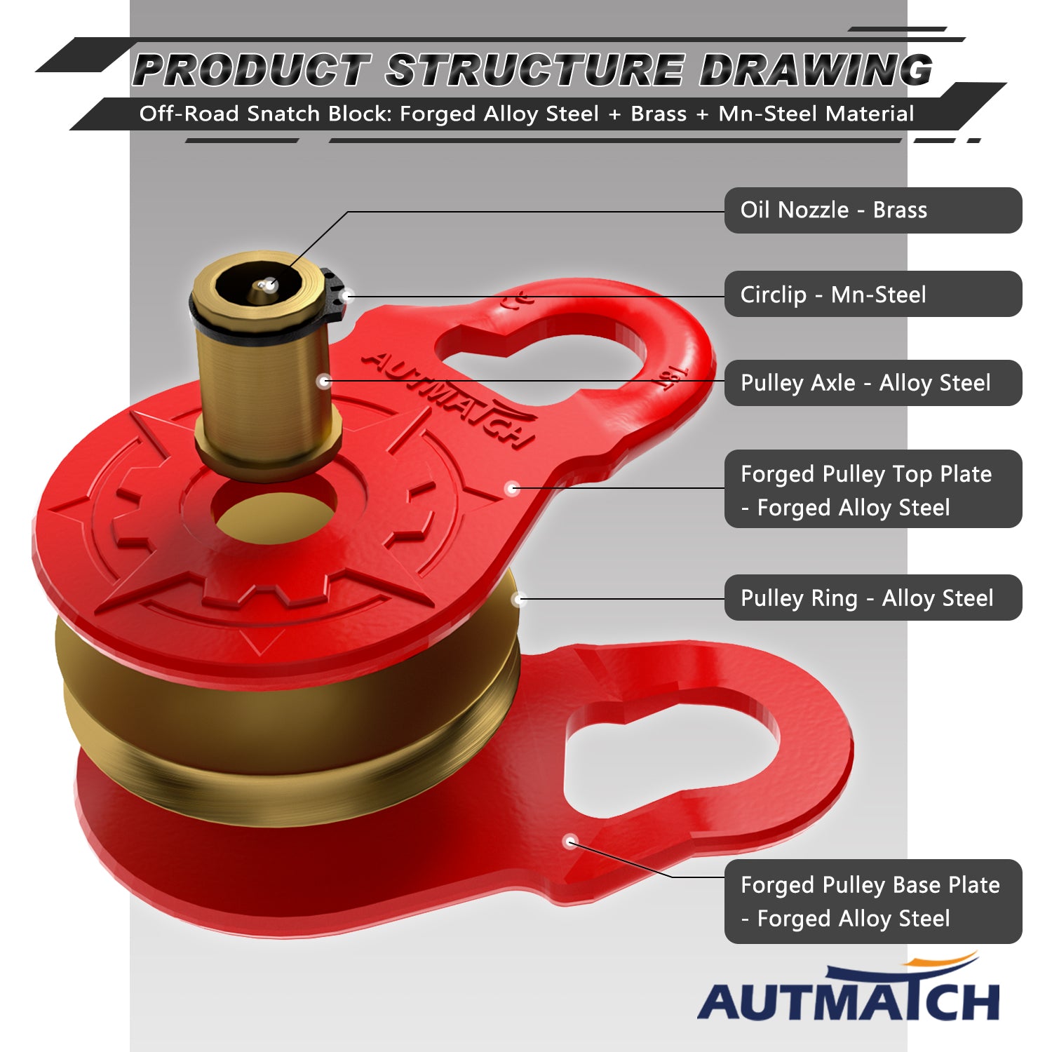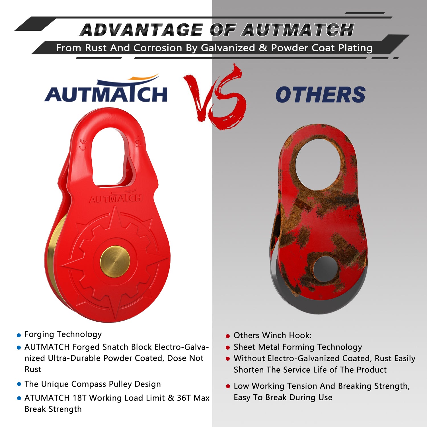 - Super Quality: Winch Snatch Block Pulley was Made of Ultra-Strong Drop Forged Steel with Heat Treated and Pulley Ring & Axle Made of Alloy Steel and Brass, It was Towing Capacity Up To 18T (39,683Lbs) and Max 36T (79,366Lbs) Break Strength, To Keep It More Safety & Stability, Off-Road Recovery Essential