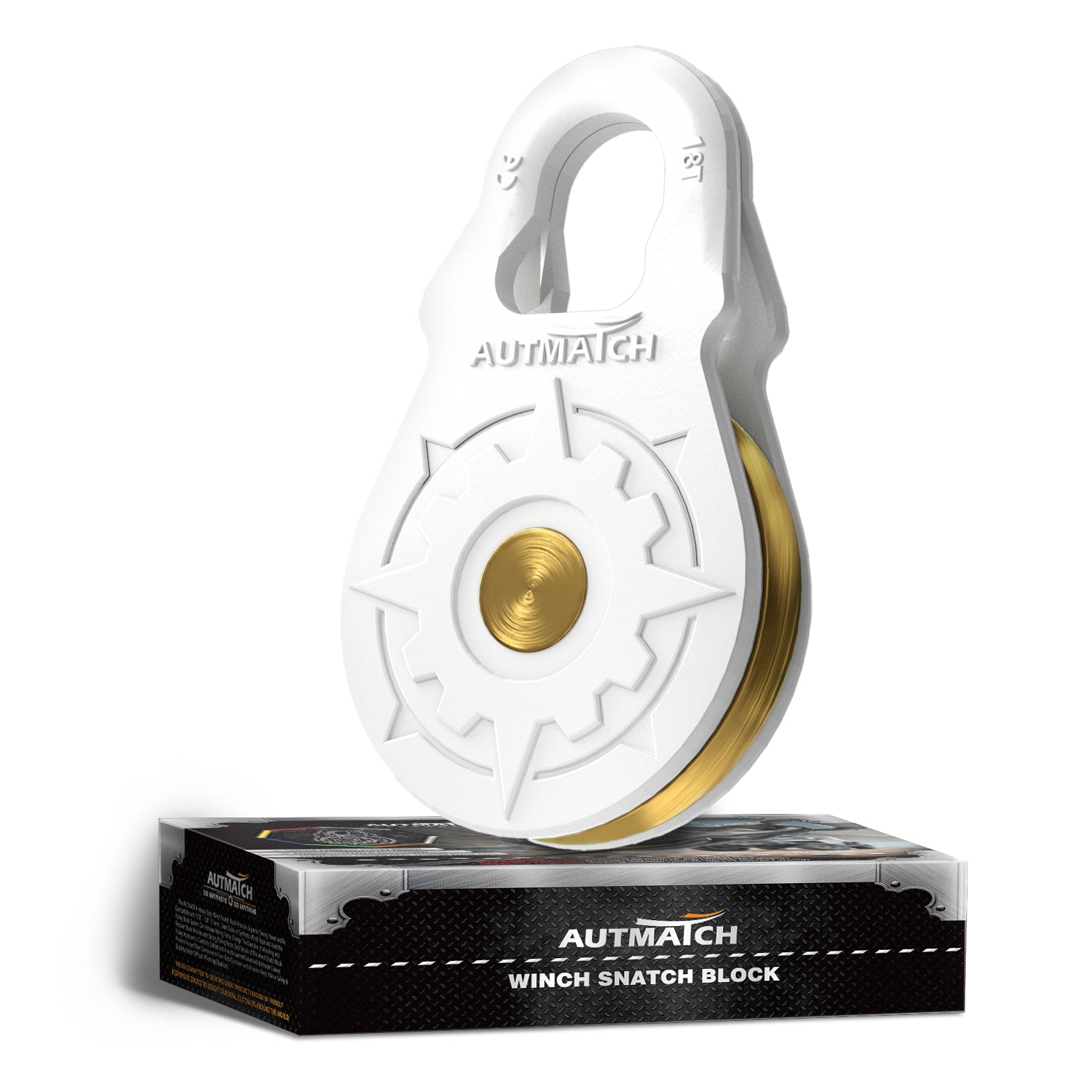 AUTMATCH Winch Snatch Block 18 Ton - Winch Pulley (79,366 Lbs) Break Strength, Heavy Duty Off Road Recovery Towing Pulley Blocks for Synthetic Rope or Steel Cable, Truck, UTV, ATV, White