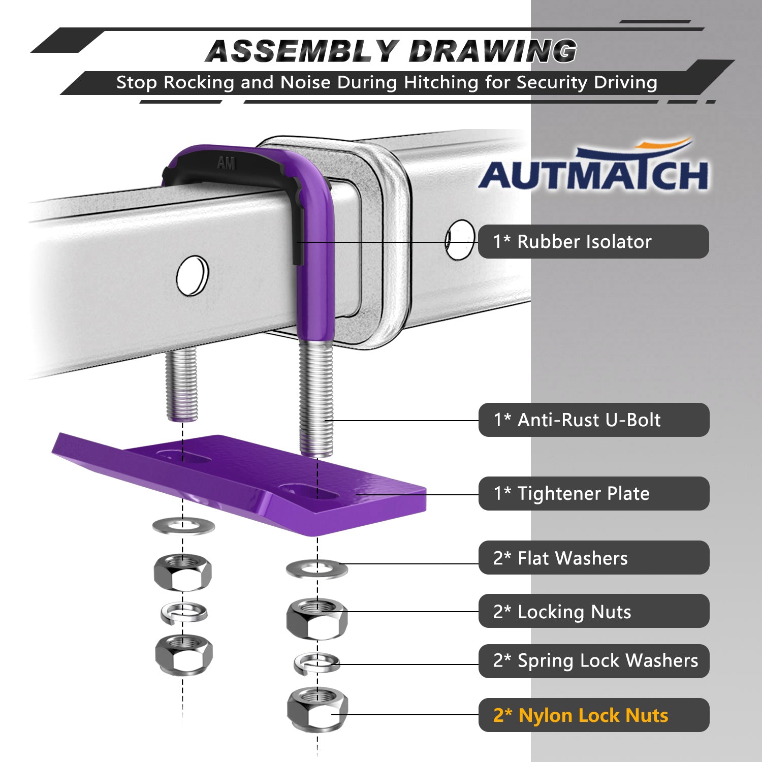 AUTMATCH Hitch Tightener Anti-Rattle Clamp, Heavy Duty Hitch Stabilizer for 1.25 and 2 inch Trailer Hitches, Rubber Isolator and Anti-Rust Double Coating Protective, Purple
