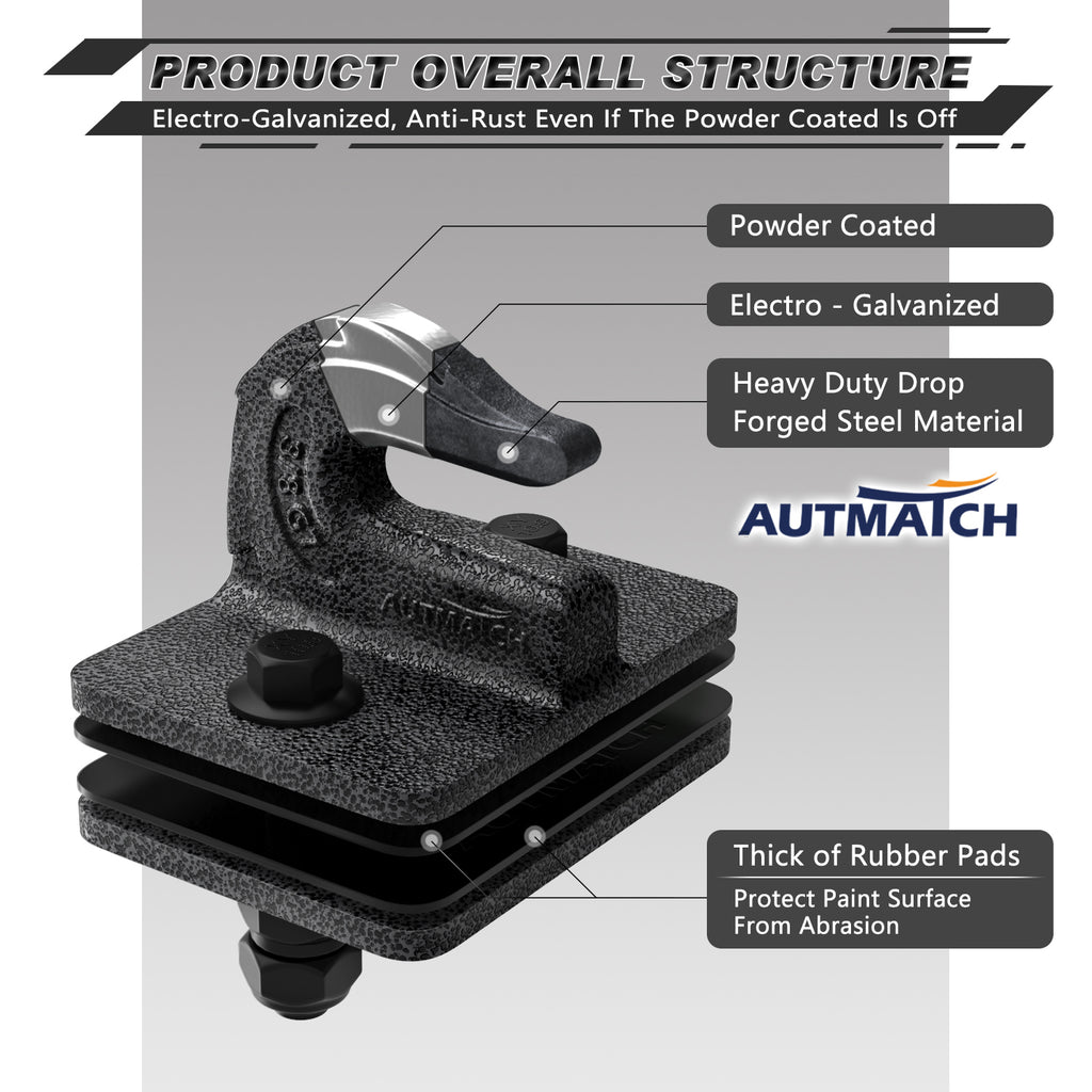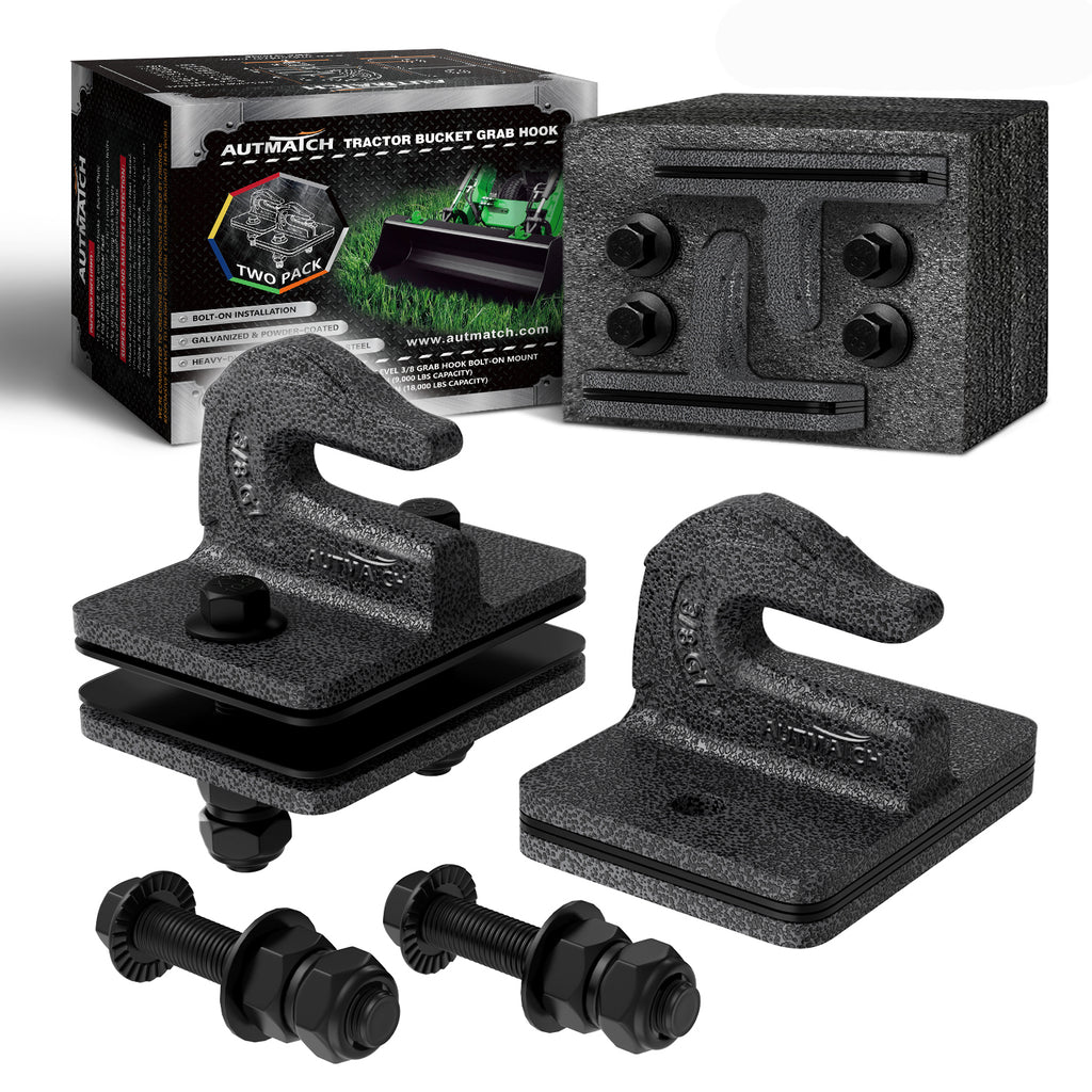 AUTMATCH Tractor Bucket Grab Hook 3/8" (2 Pack), Grade 70 Forged Steel Bolt On Grab Hook Tow Hook Mount with Backer Plate & Rubber Pads, Max 18,000Lbs Work for Loader, Tractor Bucket, Truck, Grainstone