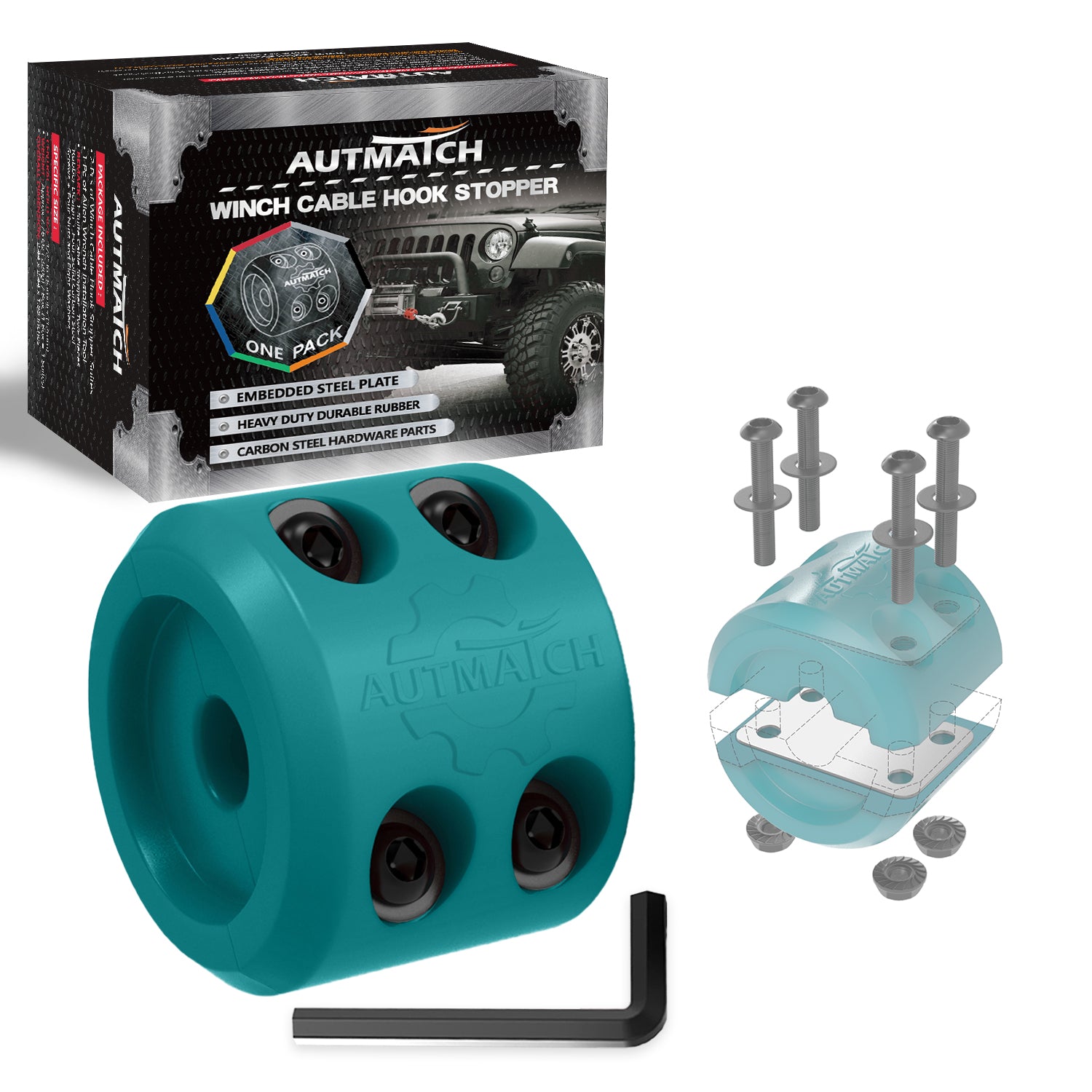 AUTMATCH Winch Cable Hook Stopper (1 Pack) Silicone Rubber Shock Absorbent Winch Stopper Teal