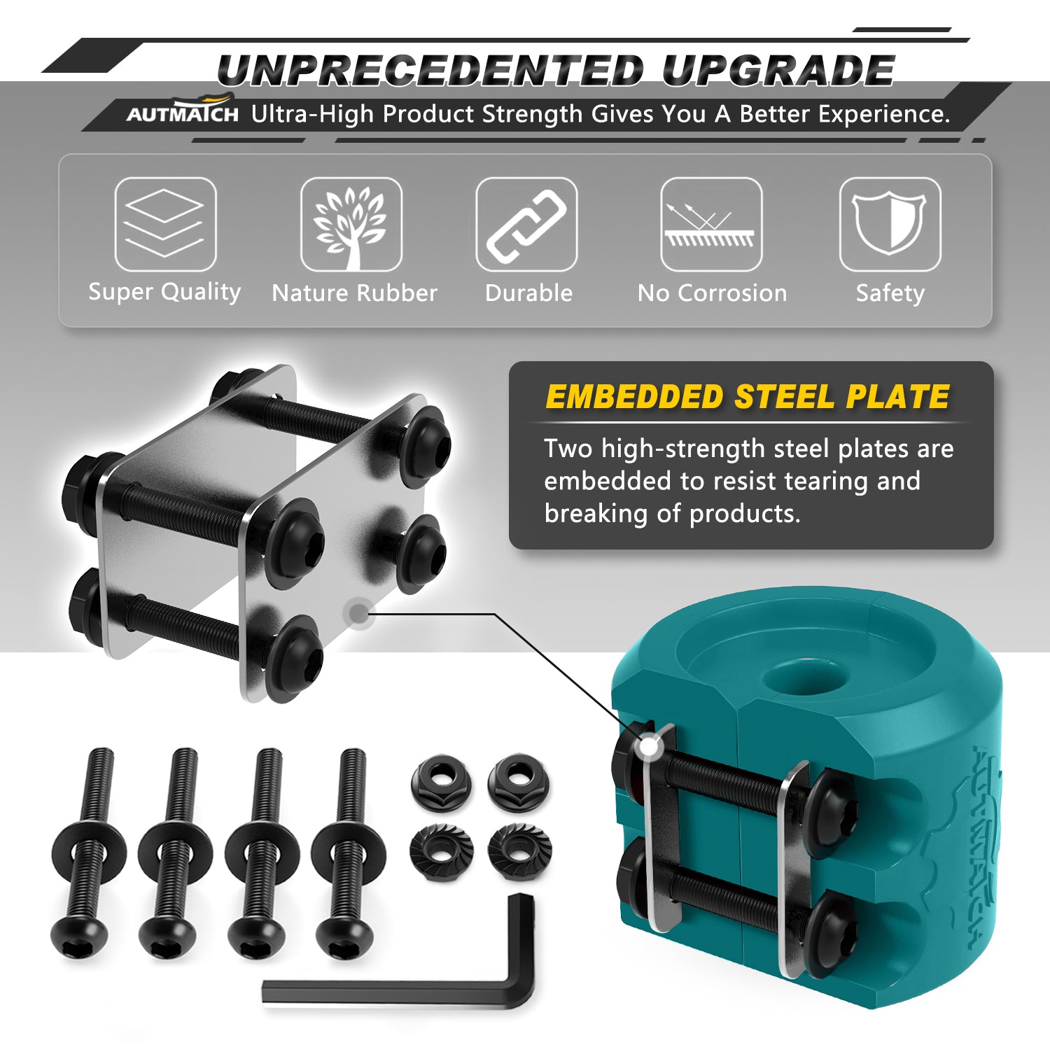 - Fitted Suite: Two-Pieces Silicone Rubber Design with Four Solid Carbon Steel Bolts, Four Locking Nuts and Four Washers Add a Portable Allen Wrench Tool, Split Design for Easy Installation. All of These Accessories Surface Covered By Zinc & Ni