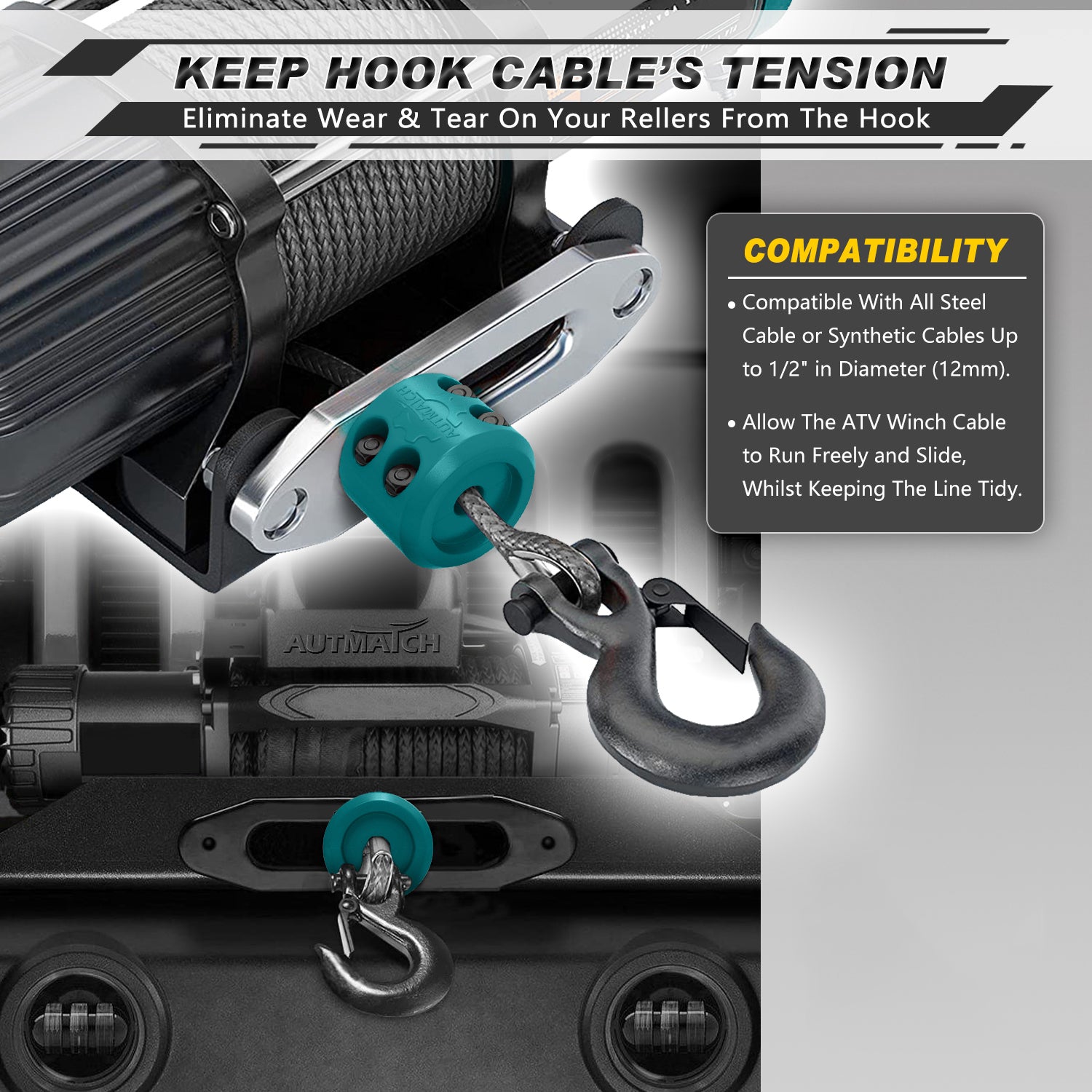 - Compatibility: Compatible With All Steel Cable or Synthetic Cables Up to 1/2" in Diameter (12mm). Allow The ATV Winch Cable to Run Freely and Slide, Whilst Keeping The Line Tidy. Protect Your Winching Gear Like Never Before. For Trucks, ATV, UTV, ORV, Trailers, and Sport-Utility Vehicles Etc