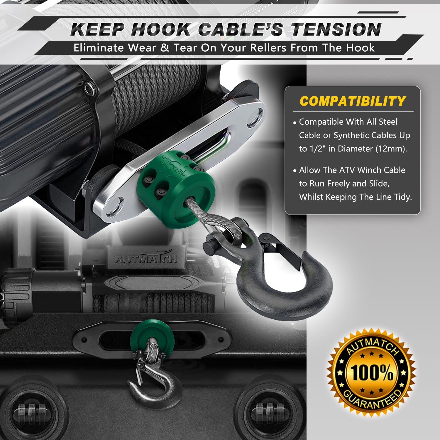 - Compatibility: Compatible With All Steel Cable or Synthetic Cables Up to 1/2" in Diameter (12mm). Allow The ATV Winch Cable to Run Freely and Slide, Whilst Keeping The Line Tidy. Protect Your Winching Gear Like Never Before. For Trucks, Jeeps, ATV, UTV, ORV, Trailers, and Sport-Utility Vehicles Etc