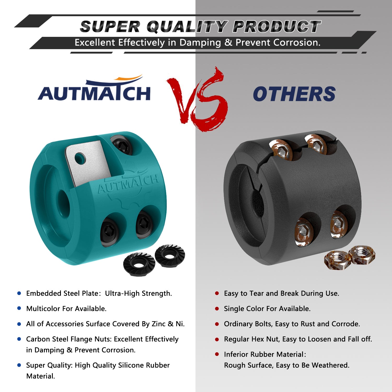 - Fitted Suite: Two-Pieces Silicone Rubber Design with Four Solid Carbon Steel Bolts, Four Locking Nuts and Four Washers Add a Portable Allen Wrench Tool, Split Design for Easy Installation. All of These Accessories Surface Covered By Zinc & Ni